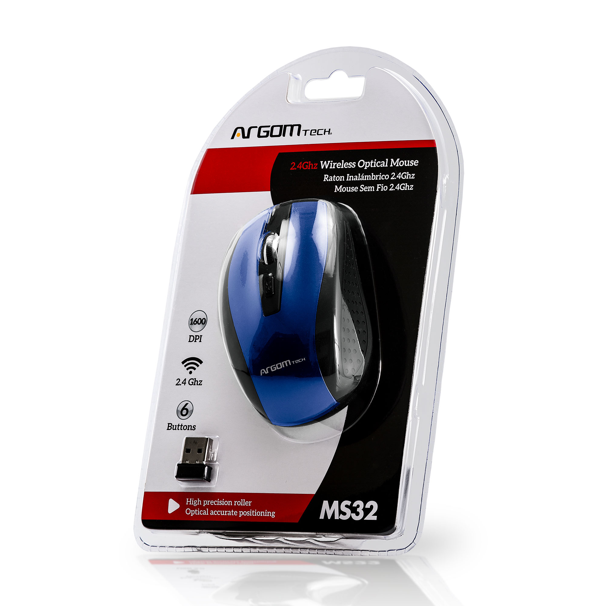 Ratón inalámbrico de 2,4 GHz con 6 botones. Incluye botón izquierdo, botón derecho, frontal, posterior, tecla DPI y rueda de desplazamiento, que permite al usuario tener una sensación de clic precisa.