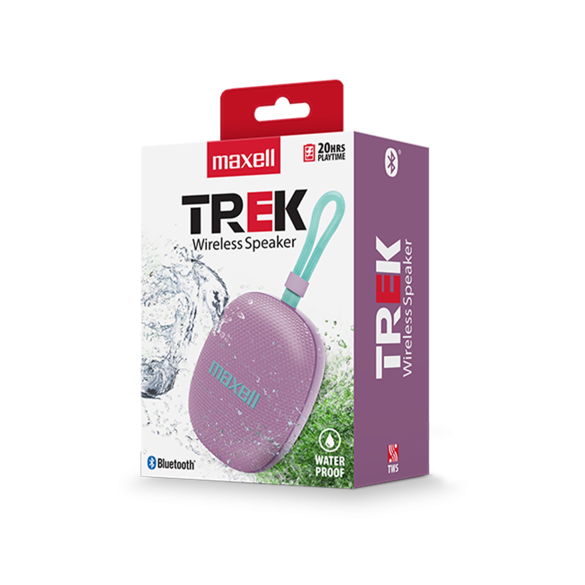 Parlante InalámbricosTrek Maxell. Características: 20 Hrs de uso dependiendo del Volúmen. Conección TWS. IPX7 Contra Agua. Cable USB-C.